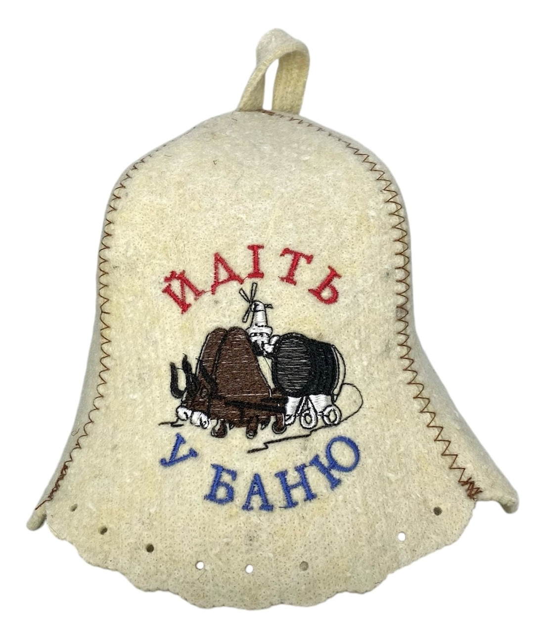 Шапка для бані та сауни з вовни "Йдіть у баню" – це веселий і практичний аксесуар для тих, хто цінує комфорт і гумор під час відпочинку в парній. Виготовлена з натуральної повсті, шапка ефективно захищає голову від перегріву, забезпечуючи приємний і безпечний відпочинок. Оригінальна машинна вишивка з написом "Йдіть у баню" додає виробу жартівливого настрою, роблячи його чудовим подарунком або стильним доповненням до вашого банного гардероба. Бежевий колір легко поєднується з іншими аксесуарами. Вироблена в Україні, шапка відповідає високим стандартам якості та довговічності. Ковпакова форма гарантує зручність і комфорт під час кожного використання.